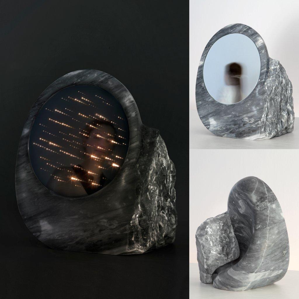 The ‘Mirror of the Unseen’ works as matrix partially shaped by a craftsman’s hands and partially machine-milled after having been designed using digital software.